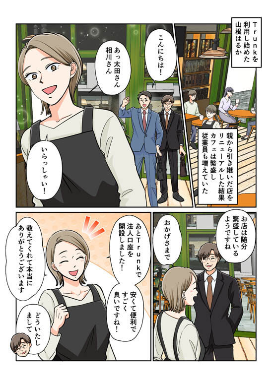 経営者交流会で若手経営者の香川と出会う。複数の法人口座を持っている香川は残高確認や資金管理の煩雑さで悩みを抱えていたが…