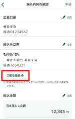 振込先登録は、お振込時に「口座を登録」にチェックするか、「振込先口座の登録・編集」から可能です。