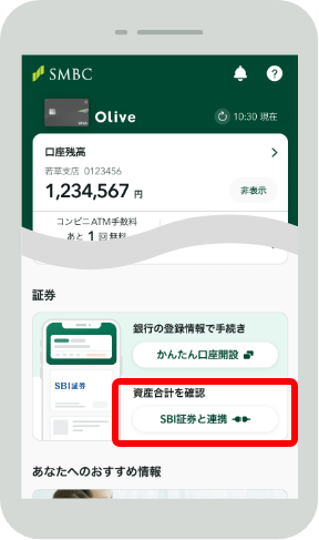 - 三井住友銀行は、SBI証券を委託金融商品取引業者として、証券口座の開設、及び有価証券の売買の媒介を金融商品仲介業務として行います。三井住友銀行以外の仲介によりSBI証券の証券総合口座を開設したお客様を対象とするものではございません。
