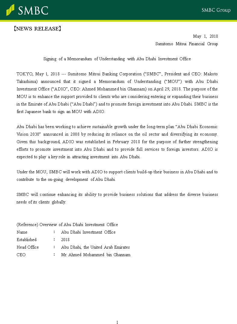 Signing of a Memorandum of Understanding with Abu Dhabi Investment Office(1/1)