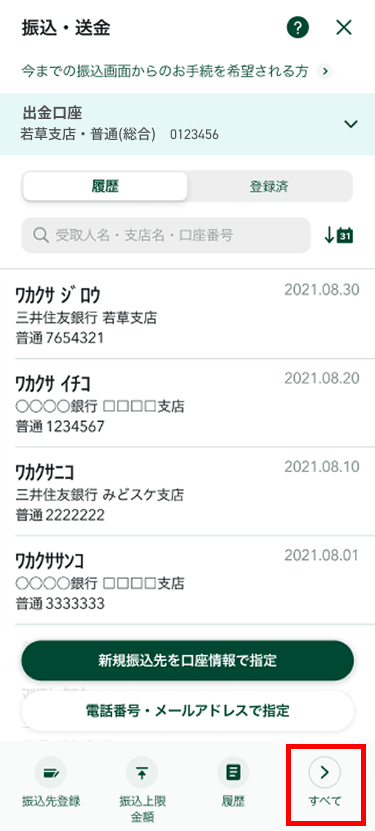 ボタンをタップすると、内容が反映されます。- ※口座番号あての送金の場合はメッセージは付けられません。