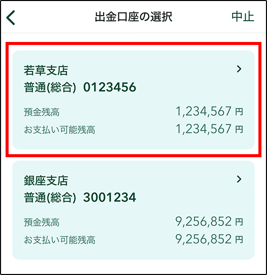 出金する口座をタップします。
