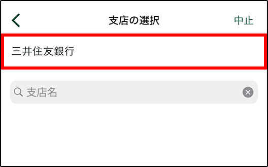 支店名または出張所名を入力し、検索します。正式名称がわからない場合は、先頭からわかる文字のみ入力してください。