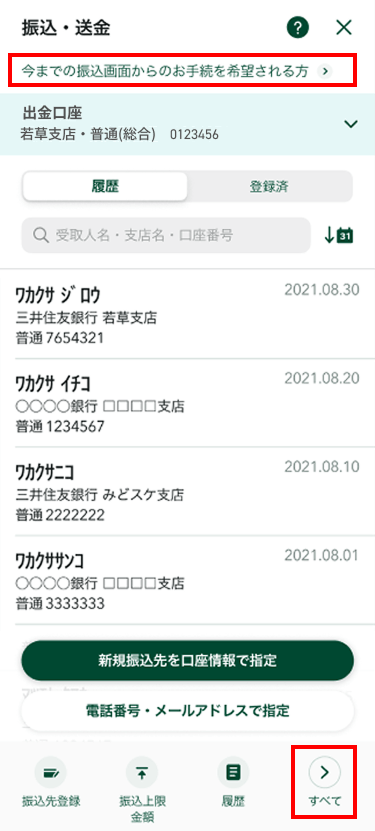 - -「今までの振込画面からのお手続きを希望される方」をタップする。