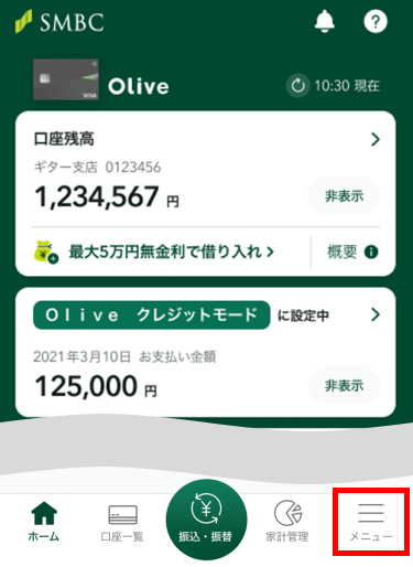 2「メニュー」にある、「SMBC ID・連携情報の設定」をタップします。