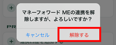 - 3マネーフォワード MEの「解除」をタップします。