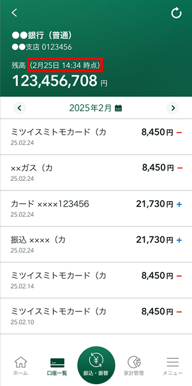 - 3ホーム画面や口座一覧画面に一度戻り、しばらく時間をおいてから再度ご確認ください。