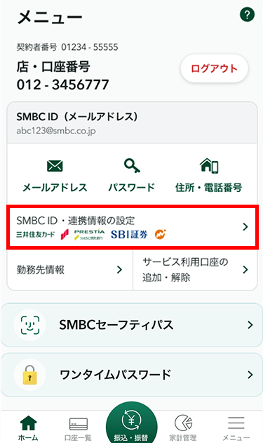 - 2.「SMBC ID・連携情報の設定」をタップします。