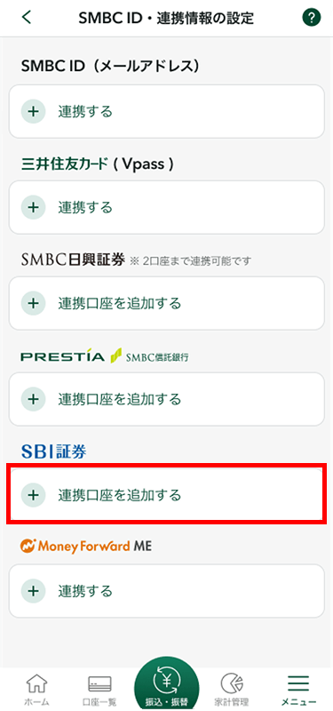 SBI証券口座を連携する